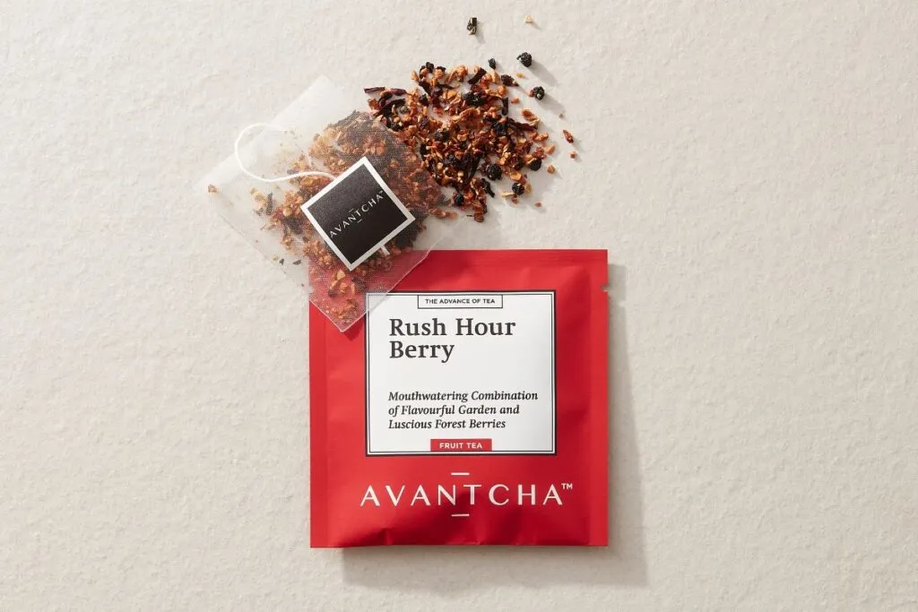For those going for the caffeine free option, our bestseller Rush Hour Berry is a herbal tea with real, natural fruit pieces and berries, such as a hibiscus petals, roasted apple pieces, blueberries, blackberries, elderberries and strawberries. Conveniently packed in teabag format, they are easy to take with you on-the-go to enjoy a fruity beverage and a great alternative to something sweet because it’s yummy, delicious and indulgent.