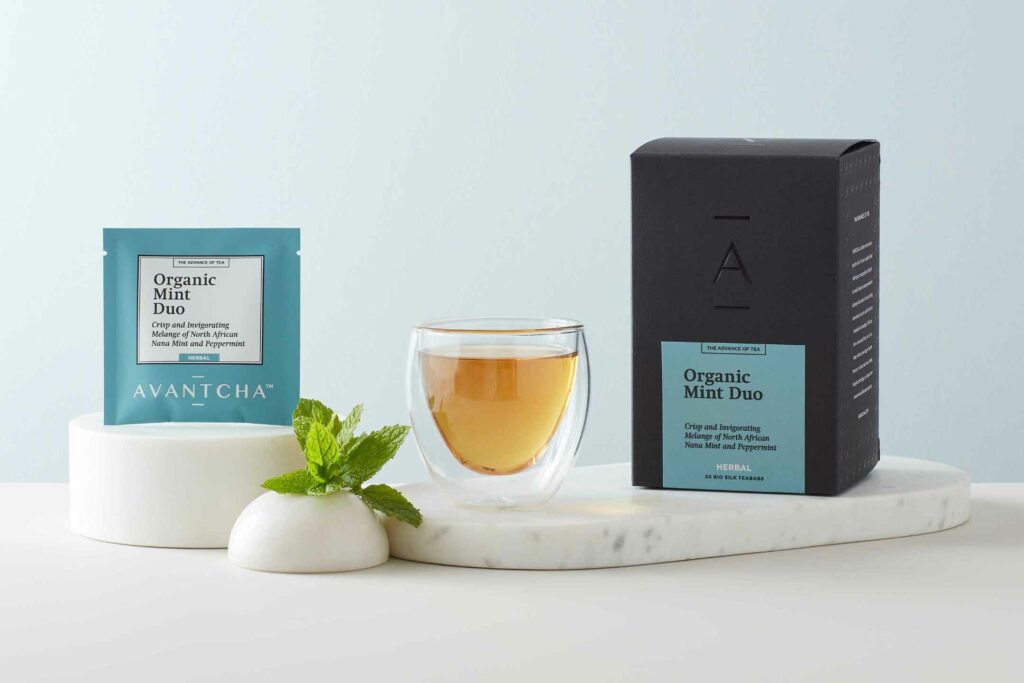 Our Organic Mint Duo is the perfect choice to serve to friends and family. Caffeine free, this blend of peppermint and spearmint leaves will uplift and cleanse whoever takes a sip on this refreshing herbal tea.